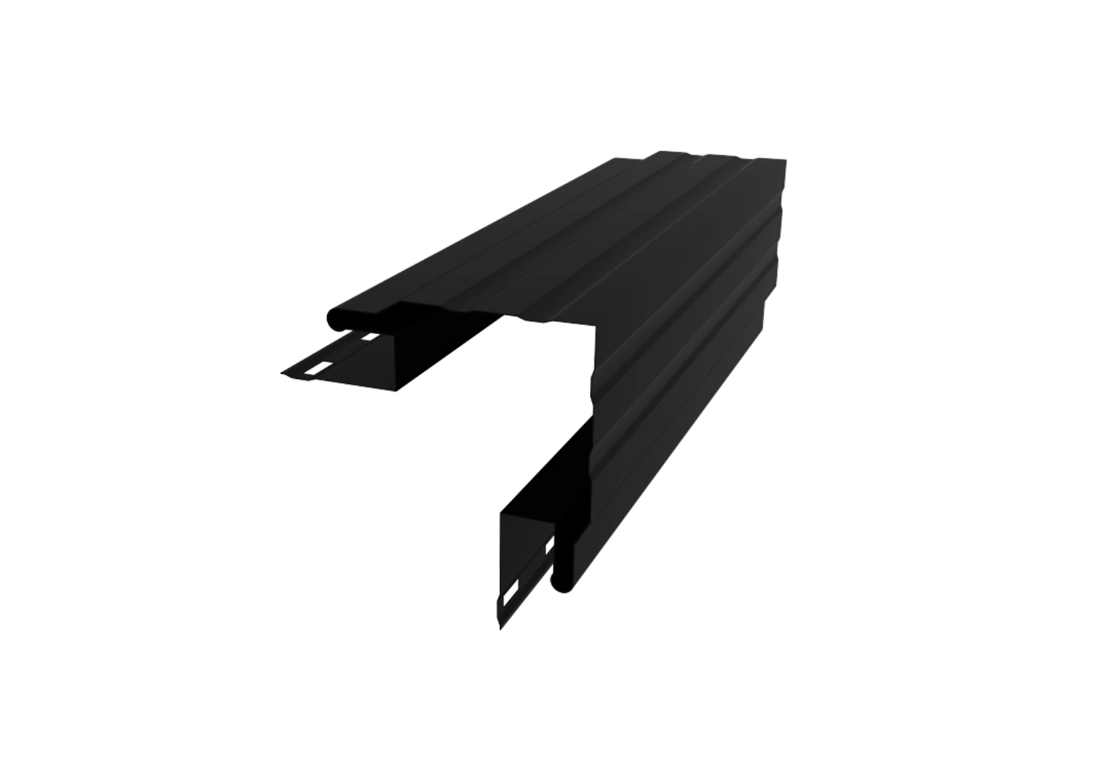 Угол внешний сложный 80 x 80 ДАМИР (0,45/пор. окраш. 7024 графит) - закрывает внешнее угловое соединение сайдинга. Сначала монтируется угол. Сайдинг монтируется во вторую очередь в паз угла.