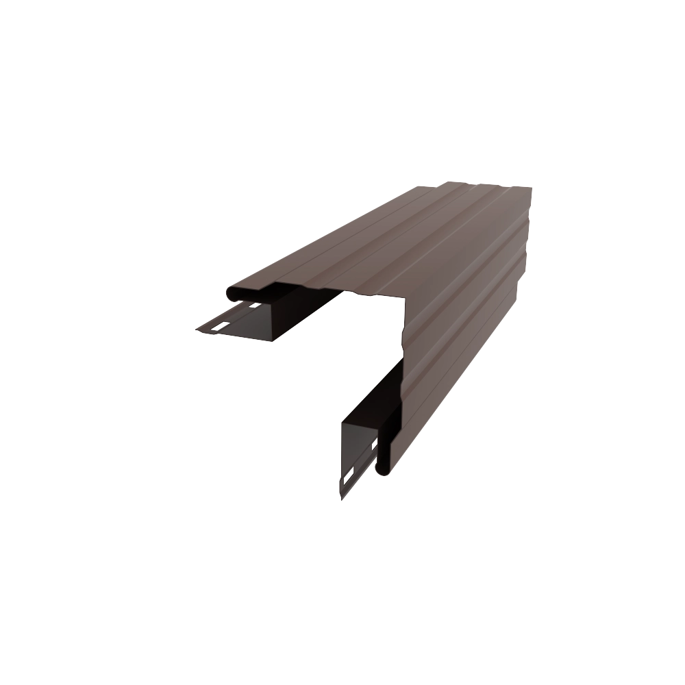 Угол внешний сложный 80 x 80 ДАМИР (0,45/пор. окраш. 8017 шоколад) - закрывает внешнее угловое соединение сайдинга. Сначала монтируется угол. Сайдинг монтируется во вторую очередь в паз угла.