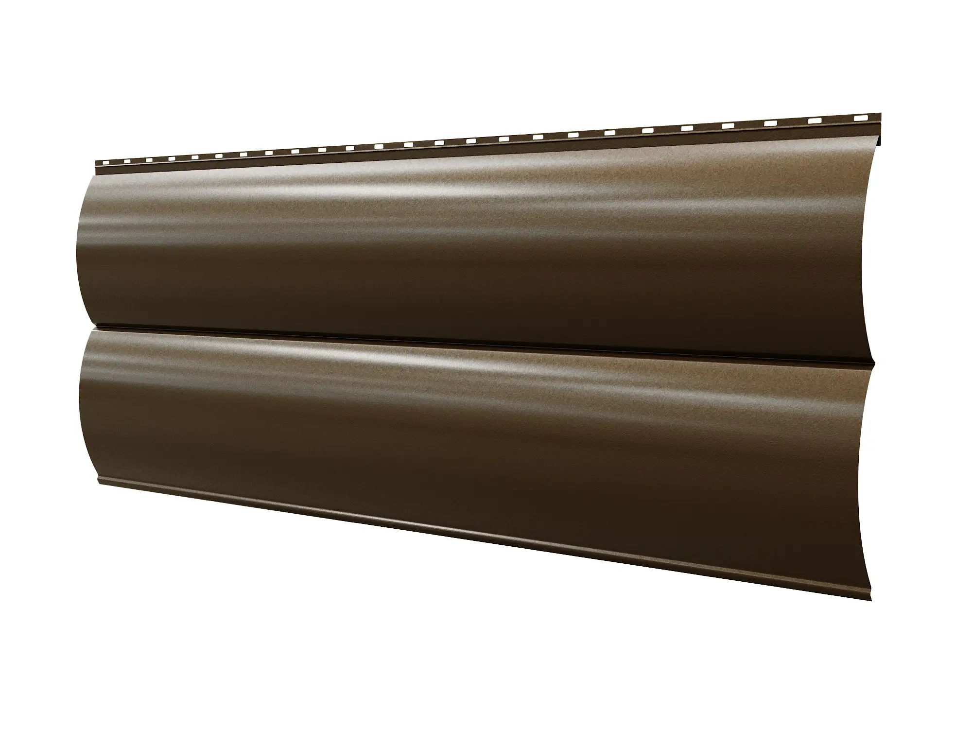 Сайдинг металлический Двойное бревно 388 (354) (0,45/8017 шоколад МАТ) - это производное классического металлического сайдинга, которое имеет оригинальный вид, повторяющий форму и фактуру калиброванного бревна. Используется для облицовки фасадов зданий и при возведении заборов. Фасад, на котором смонтировано "двойное бревно", смотрится как стена, выстроенная из оцилиндрованных бревен. Такой металлосайдинг отличается уникальными эксплуатационными свойствами, быстротой сборки, длительными сроками эксплуатации до полувека.