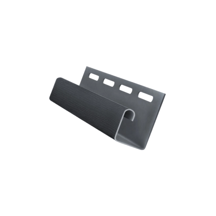 J-профиль Grand Line 3000 мм графит - доборный элемент для монтажа винилового сайдинга Grand Line. Используется в качестве завершающей планки на фронтонах и для крепления софитов