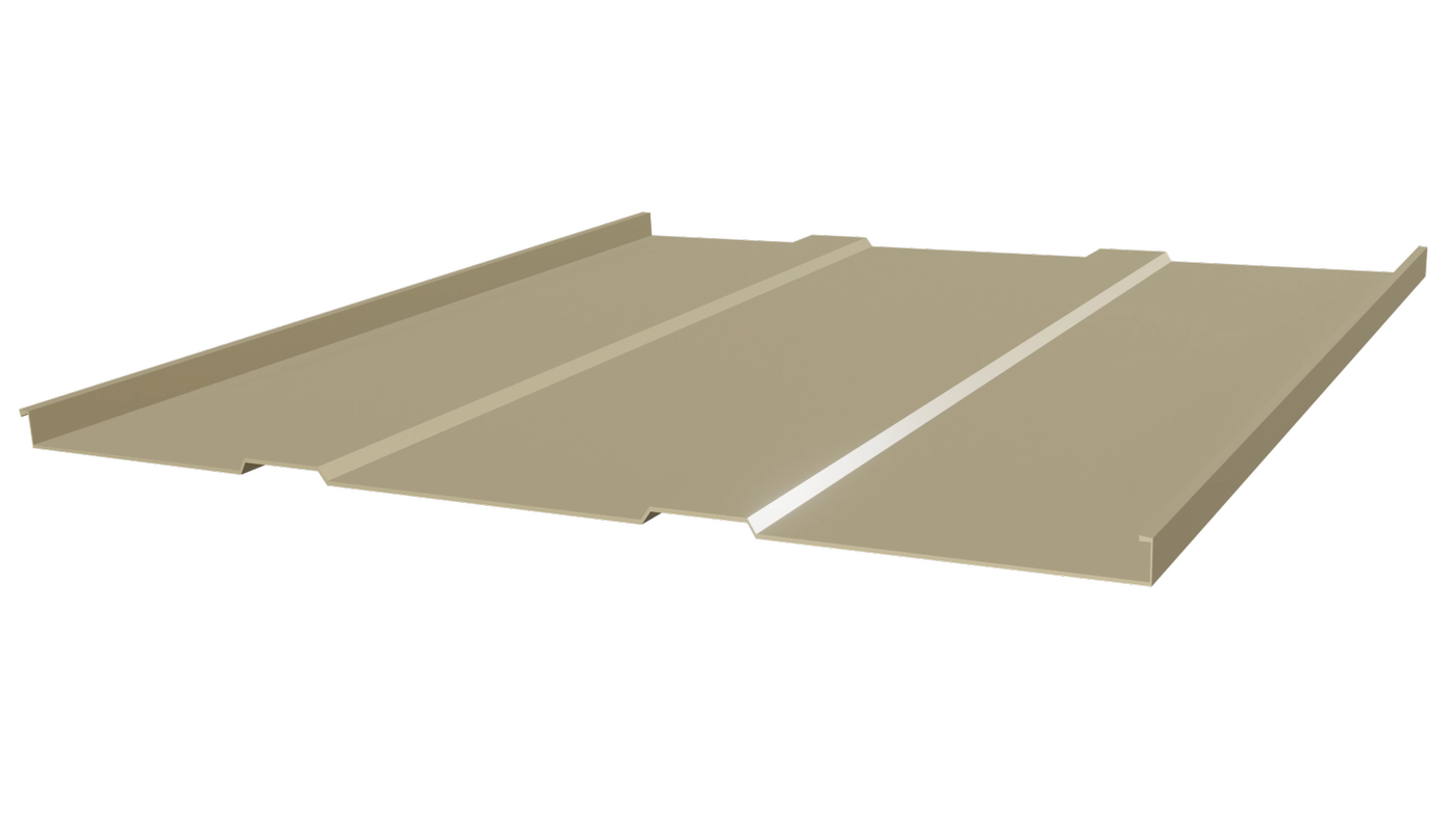 Фальцевая кровля 545 (0,45/1014 бежевый) - самый надёжный кровельный материал. Отсутствие сквозных отверстий, скрытый крепёж и надёжный замок полностью исключают возможность протечек.