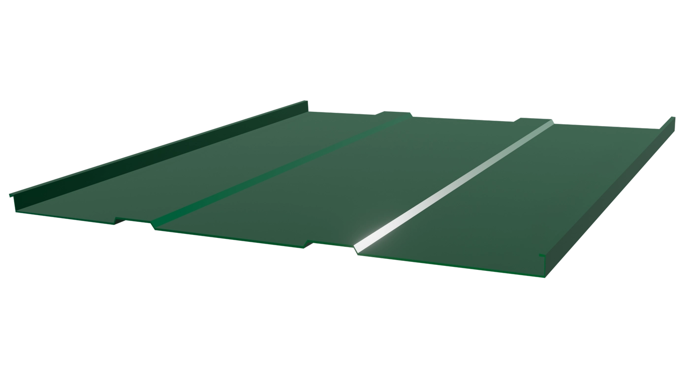 Фальцевая кровля 545 (0,65/6005 зеленый мох) - самый надёжный кровельный материал. Отсутствие сквозных отверстий, скрытый крепёж и надёжный замок полностью исключают возможность протечек.