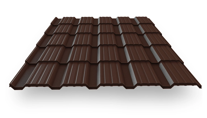 Профиль кровельный по типу металлочерепицы "Каскад" 1160 (1110) (0,45/8017 шоколад МАТ/19/350) - современный кровельный материал, который выглядит очень стильно и оригинально, его внешний вид напоминает плитку шоколада. Монтируется с незначительным нахлестом, благодаря чему число стыков и количество отходов минимально.