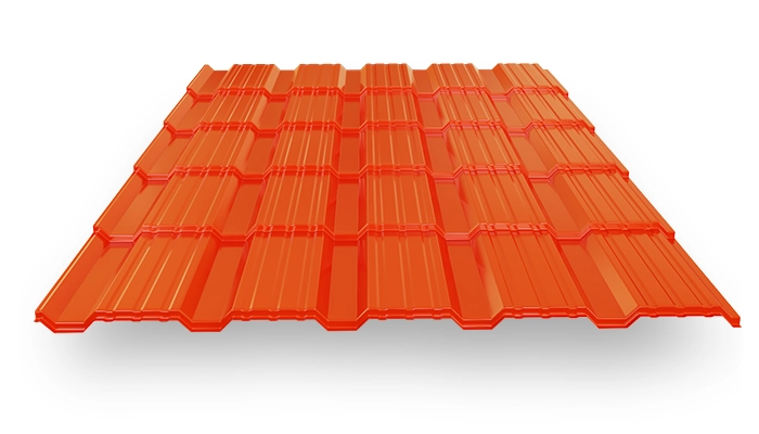 Профиль кровельный по типу металлочерепицы "Каскад" 1160 (1110) (0,45/2004 оранжевый/19/350) - современный кровельный материал, который выглядит очень стильно и оригинально, его внешний вид напоминает плитку шоколада. Монтируется с незначительным нахлестом, благодаря чему число стыков и количество отходов минимально.