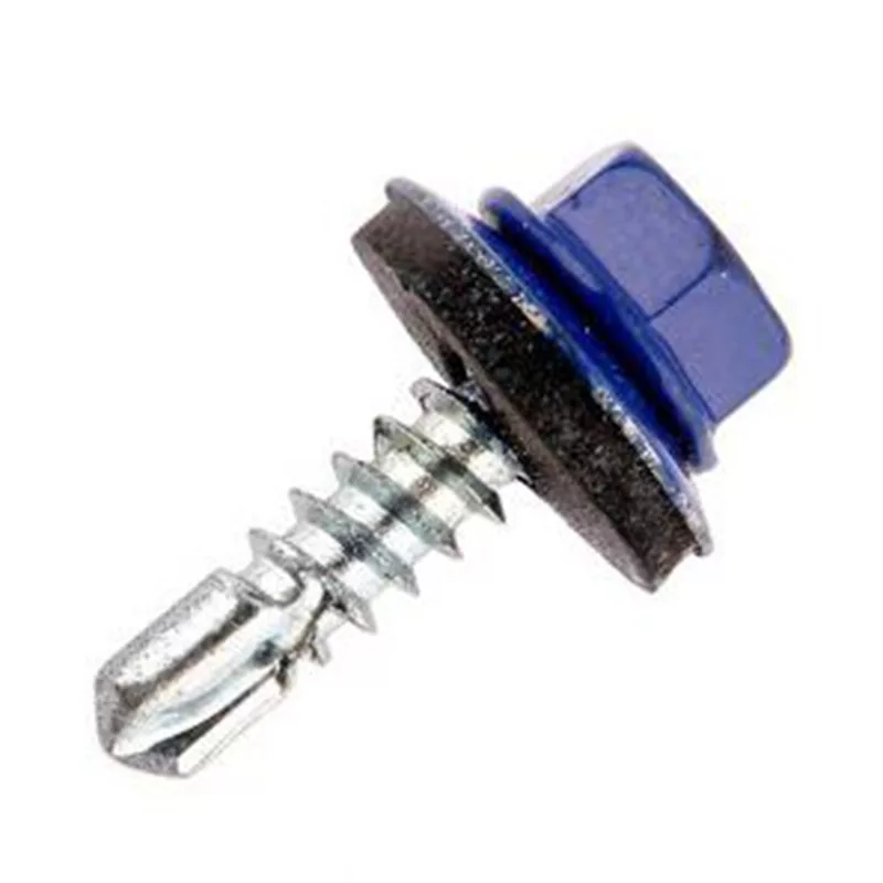 Саморез кровельный 5,5х25мм RAL5005 синий применяется для крепления металлочерепицы и профнастила к деревянным и металлическим кровельным конструкциям.