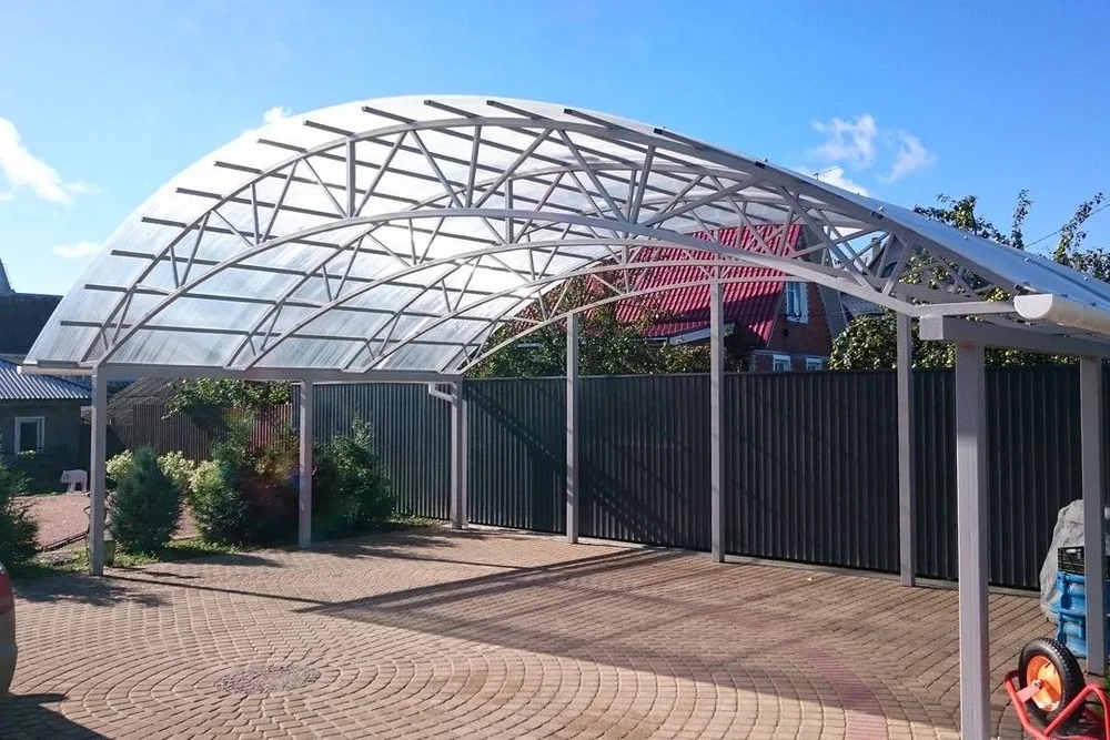 Также сотовый поликарбонат применяется при производстве рекламных щитов, вывесок и надписей, различных арочных конструкций с малыми радиусами изгиба - летние кафе, витражи, козырьки, парники, оранжереи и теплицы.