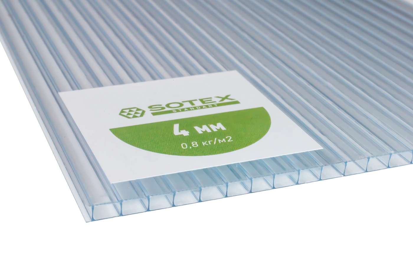 Сотовый поликарбонат SOTEX Standart прозрачный 4*2100*6000мм 0,8кг/м² - качественный поликарбонат эконом-класса, произведенный на новом импортном оборудовании.