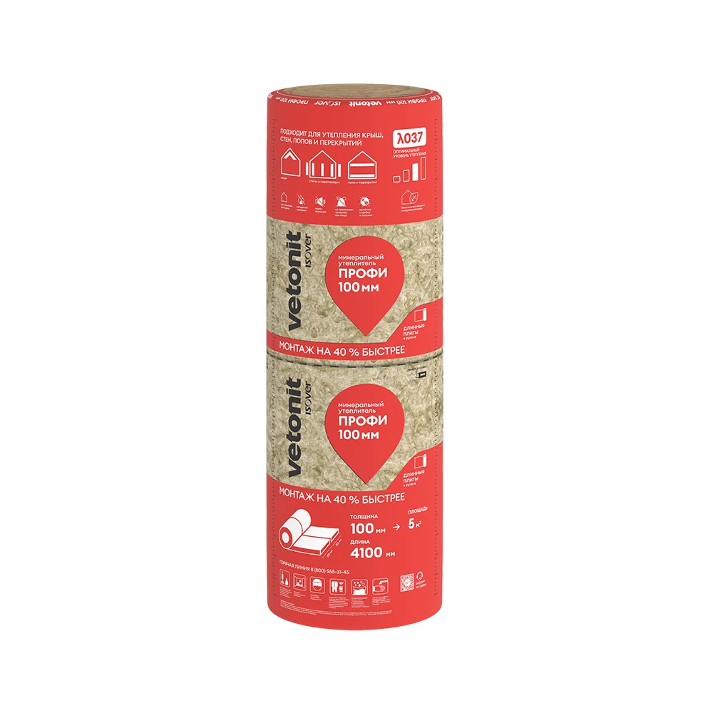 Теплоизоляция ISOVER ПРОФИ рулон 4100*610*100мм 2шт 5м2 0,5м3 67090 - профессиональный утеплитель для всего дома с повышенной упругостью и улучшенной теплопроводностью - λ 0.037. Подходит для ненагружаемых конструкций: крыш, стен, полов, перегородок и перекрытий. Является также шумоизоляцией.