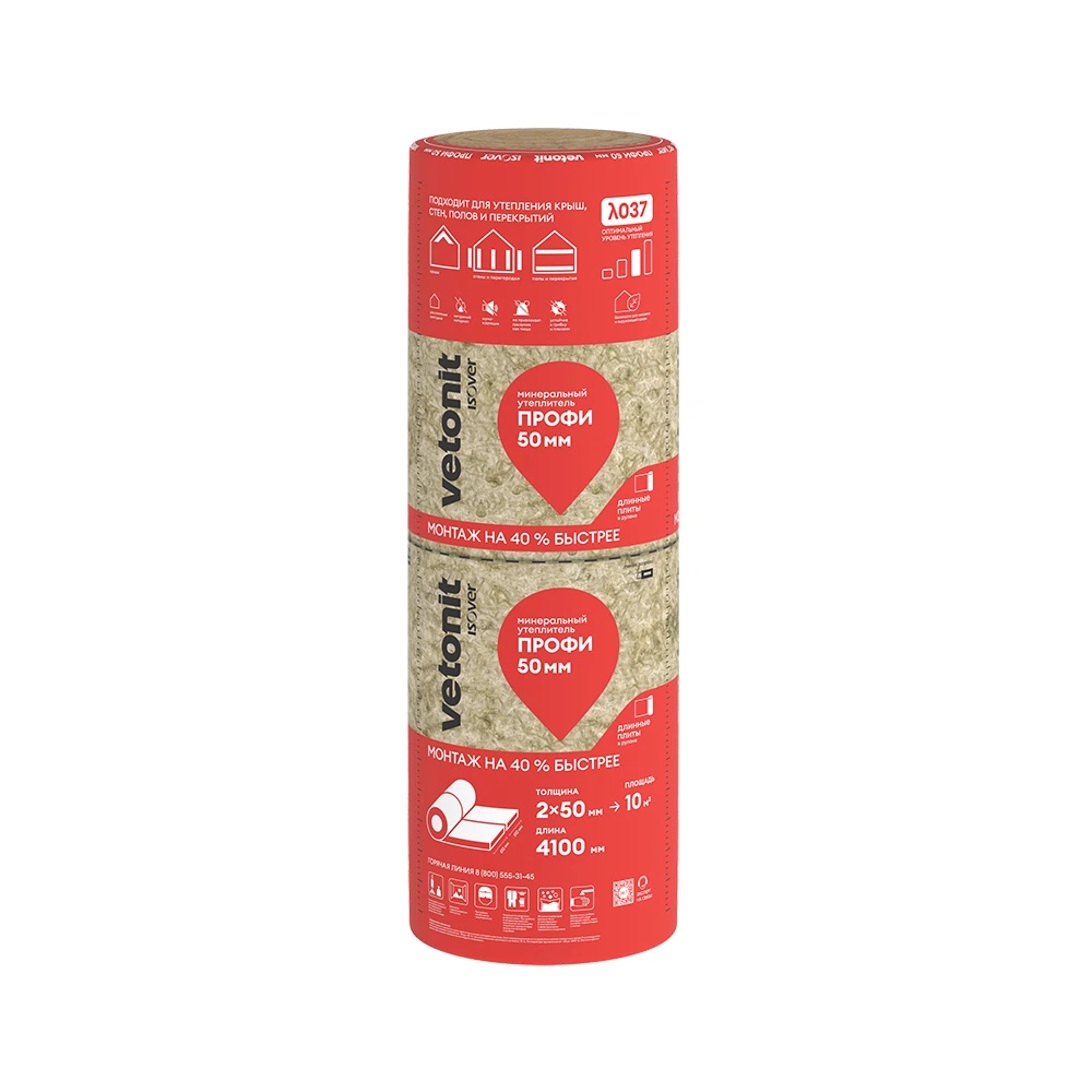 Теплоизоляция ISOVER ПРОФИ ТВИН рулон 4100*610*50мм 4шт 10м2 0,5м3 67089 - профессиональный утеплитель для всего дома с повышенной упругостью и улучшенной теплопроводностью - λ 0.037. Подходит для ненагружаемых конструкций: крыш, стен, полов, перегородок и перекрытий. Является также шумоизоляцией.