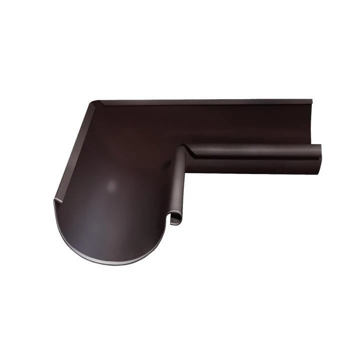 Угол желоба внутренний GRAND LINE PE металл RAL 8017 шоколадный 125 мм 90 гр серии Optima 125/90 используется для изменения направления потока воды, монтируются на внешних или внутренних (в зависимости от модели) углах кровли. Выполнен бесшовным способом (глубокой вытяжкой металла), что обеспечивает жесткость, эстетичность, герметичность и отличную гидродинамику.