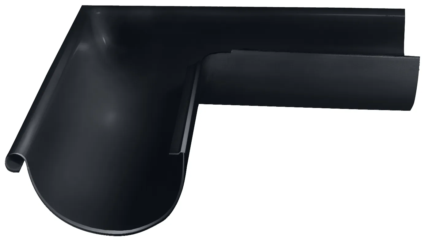 Угол желоба внешний GRAND LINE PE металл RAL 7024 графитовый 125 мм 90 гр серии Optima 125/90 используется для изменения направления потока воды, монтируются на внешних или внутренних (в зависимости от модели) углах кровли. Выполнен бесшовным способом (глубокой вытяжкой металла), что обеспечивает жесткость, эстетичность, герметичность и отличную гидродинамику.