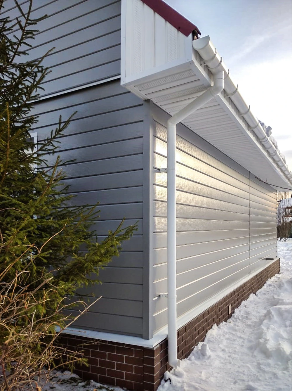 - Морозостойкость. Монтаж можно проводить при минусовых температурах до минус 17 градусов по Цельсию. Для части регионов монтаж материалов водостока из пластика возможен круглогодично!