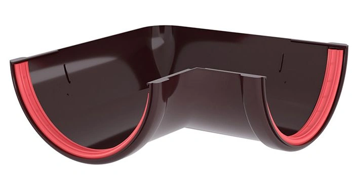 Элемент герметично соединяет два желоба под углом 90 градусов, как на внешних, так и на внутренних углах фасада.