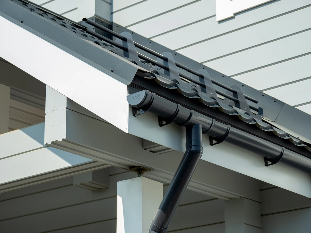Элемент предназначен для надежного крепления желоба на стропила (до монтажа кровли).