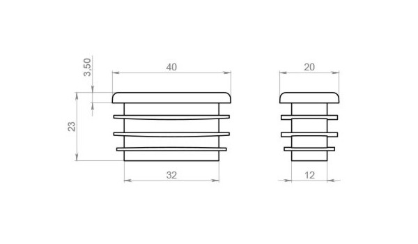 Заглушка внутренняя к трубе профильной 20 х 40 мм. используется при изготовлении заборов и других металлоконструкций для защиты поперечных элементов заборов (лаг), каркасов калиток и других элементов из труб.