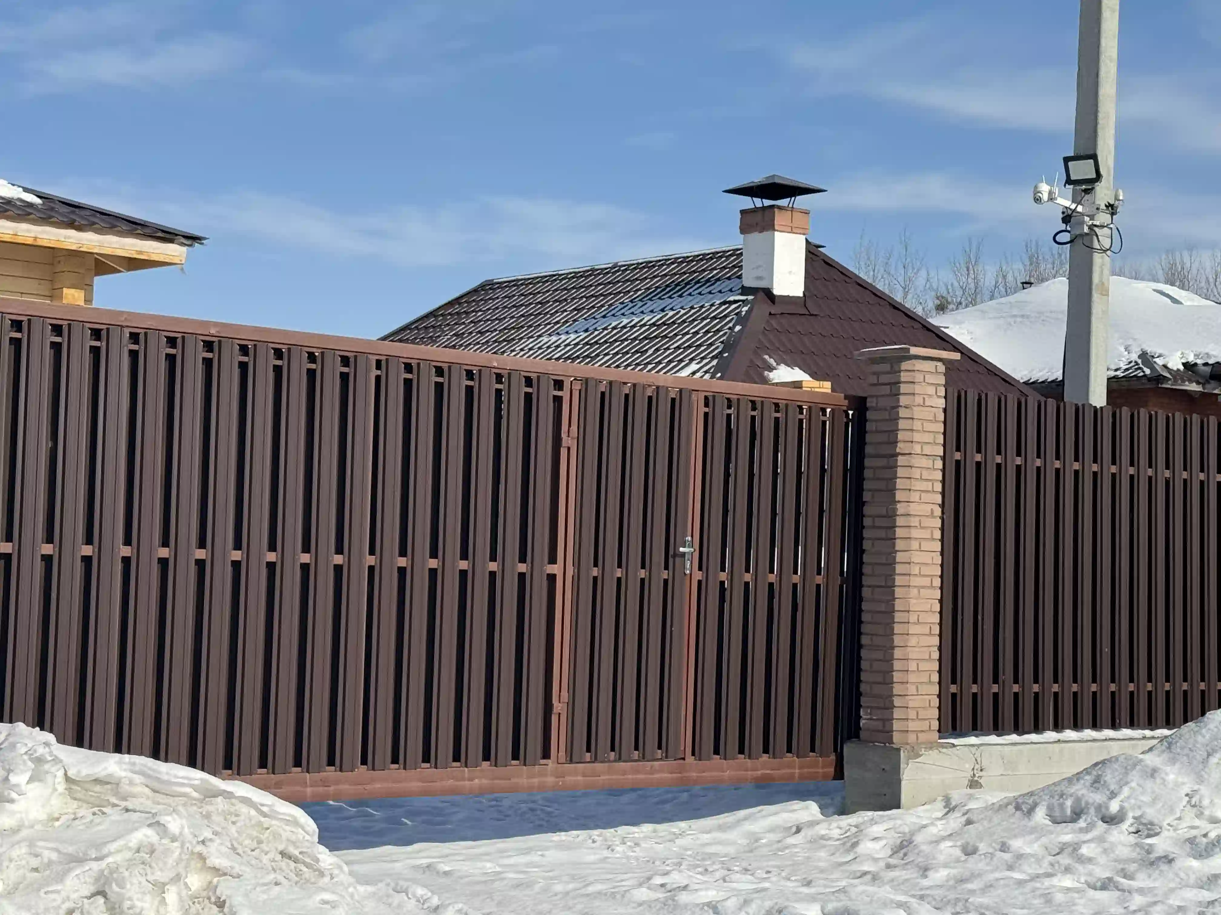 Каждый комплект калитки/ворот включает в себя наполнение в выбранном вами цвете, столбы 60х60 (2 шт.) и заглушки к ним 60 х 60 мм (2шт.), петли, ответная планка (для калиток), задвижка (для ворот).