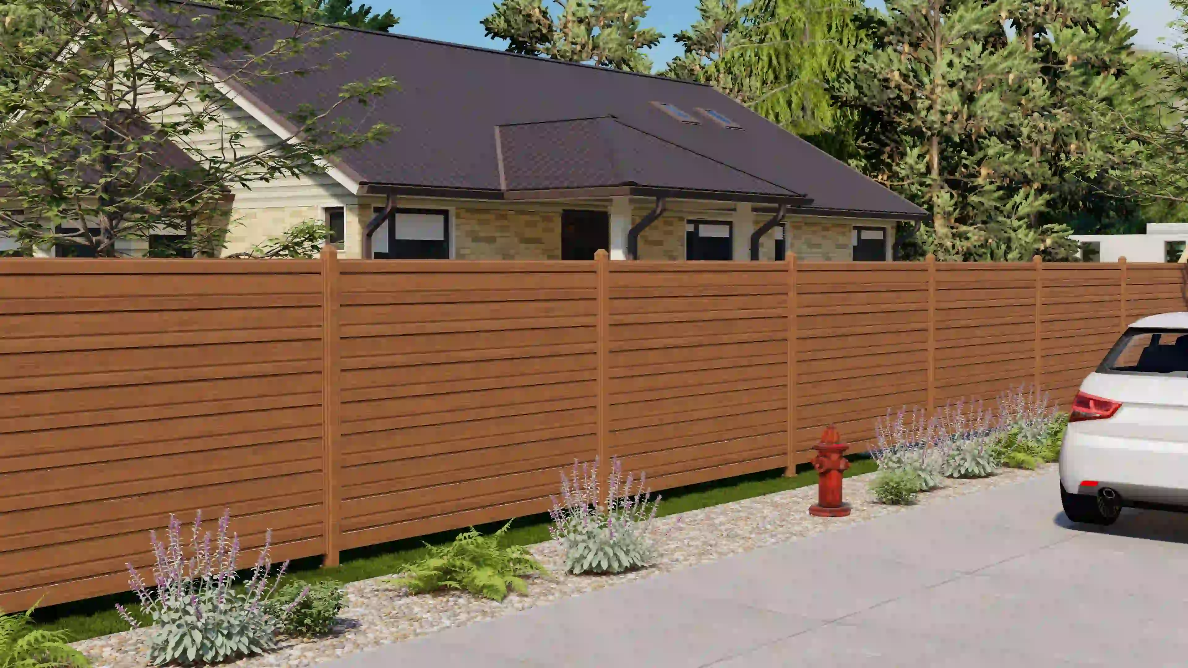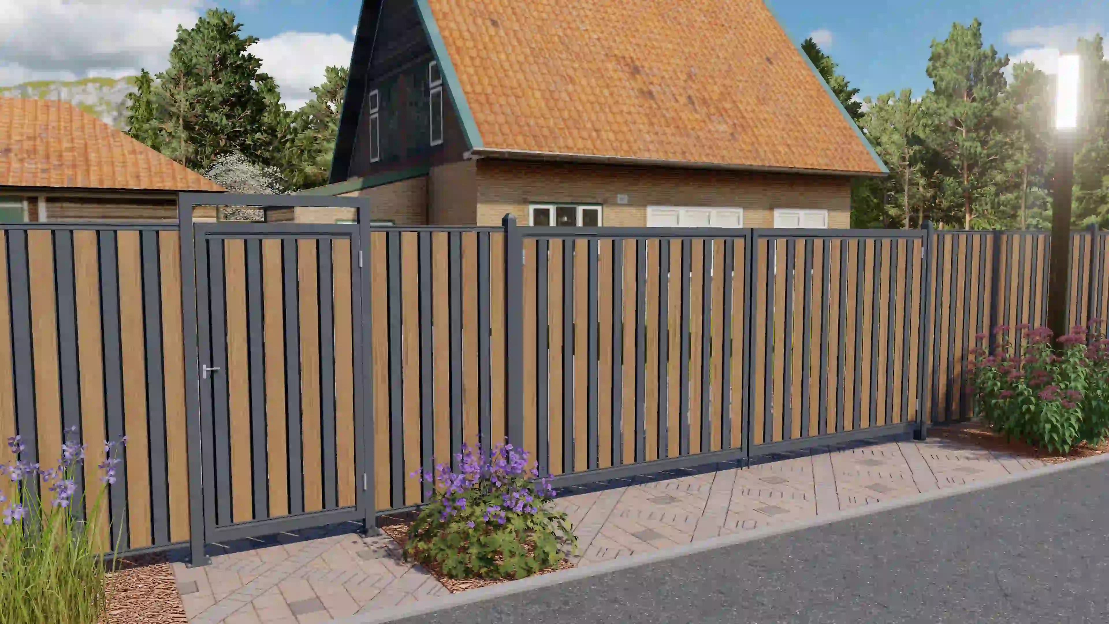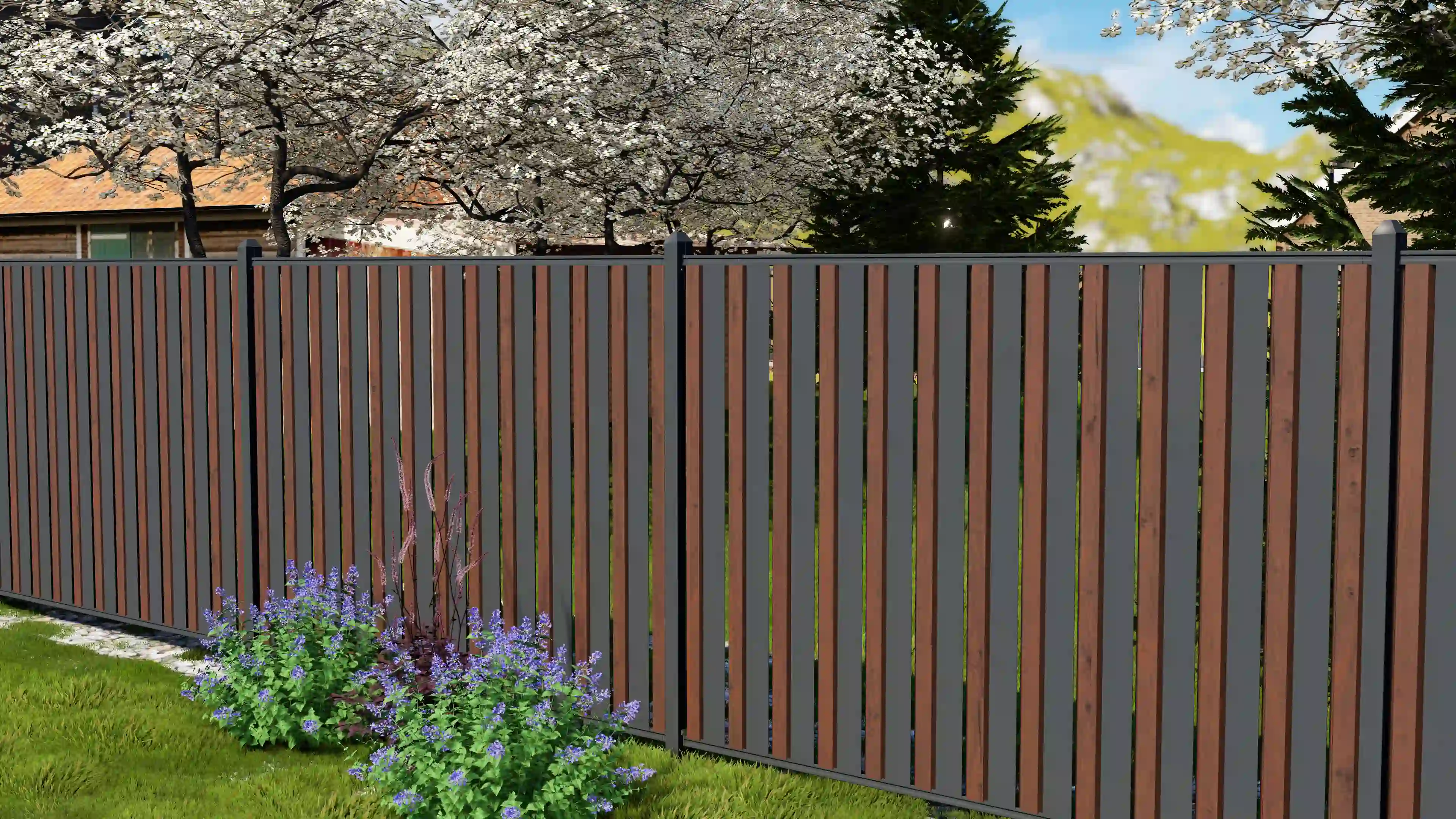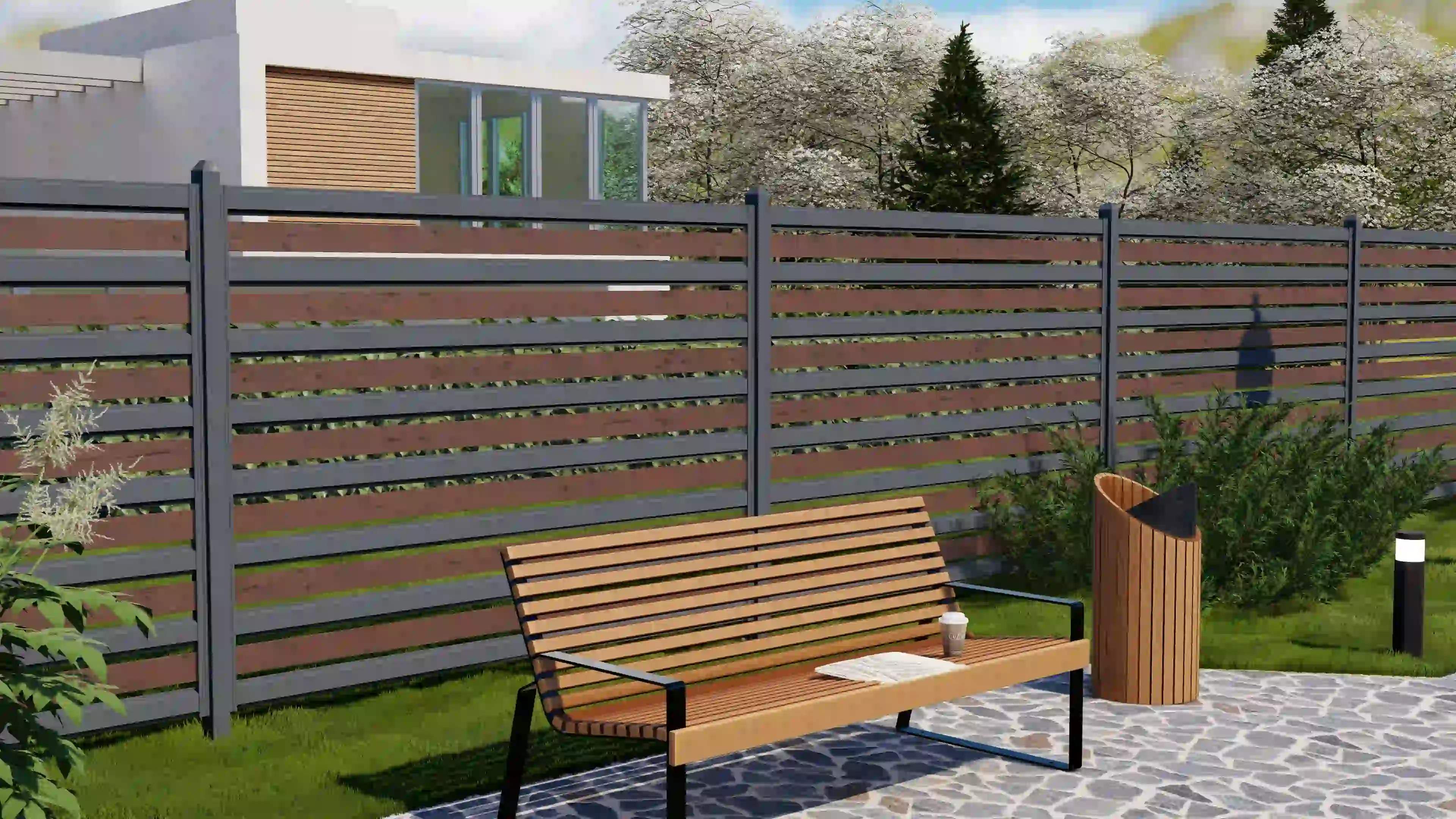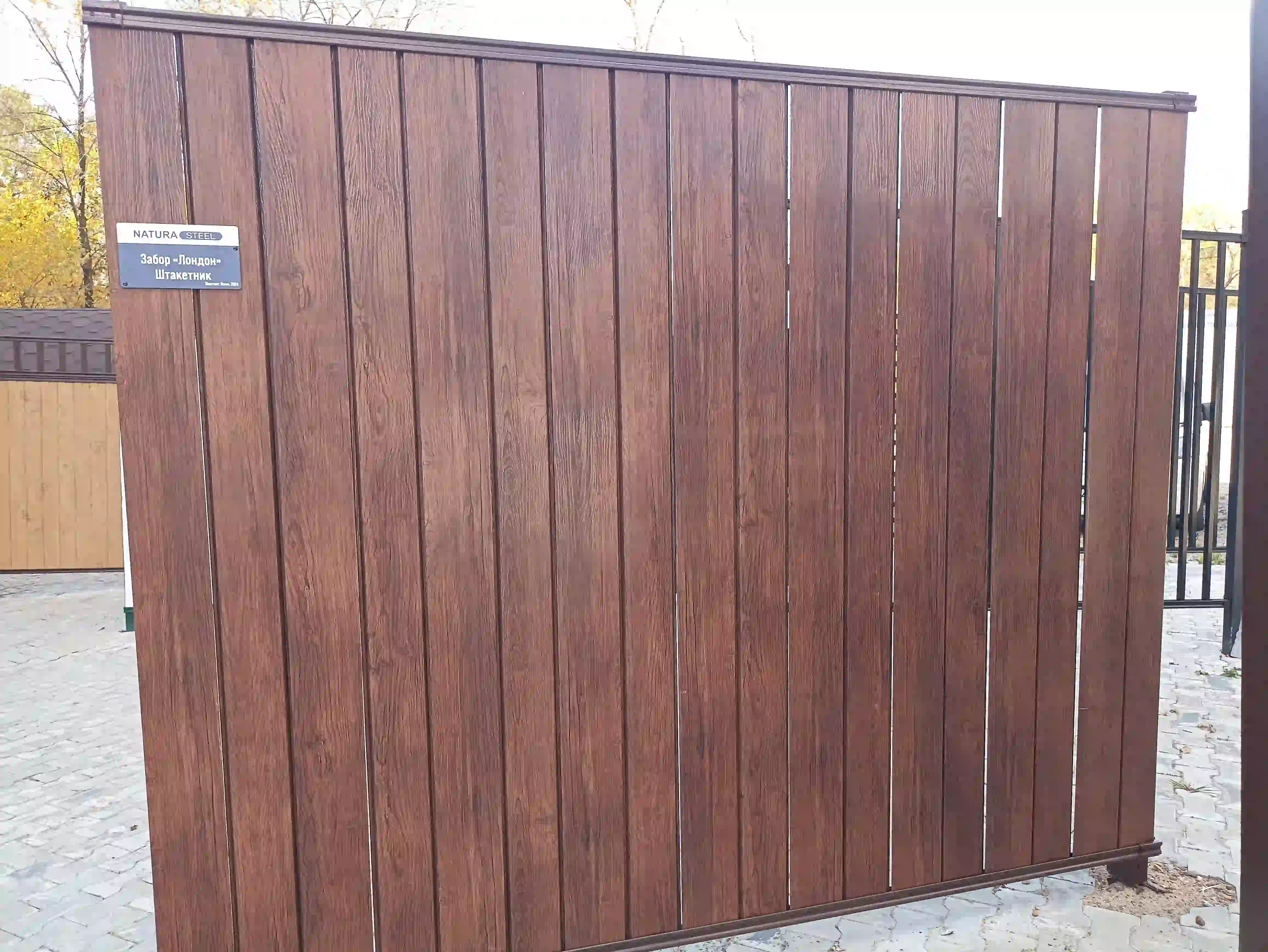 Natura Steel "Лондон" Штакетник - это ограждение со специальными металлическими ламелями. Уникальная форма ламели «Лондон» дает широкую вариативность применения их на заборе, можно выбрать шаг между ламелями и их расположение (шахматное/рядками), не изменяя при этом конструкцию каркаса.