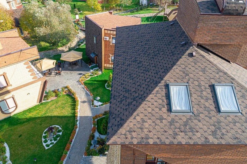 Гибкая черепица Шинглас Финская Соната (однослойная) 3кв.м. (коричневый) - традиционная для однослойной черепицы форма нарезки, напоминающая мозаику, придётся по вкусу многим домовладельцам.